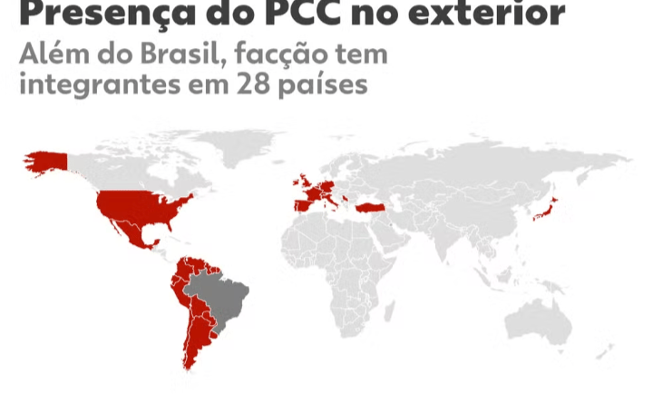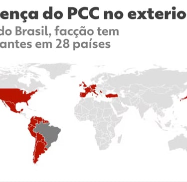 O **Primeiro Comando da Capital (PCC)** está presente em **28 países**, infiltrando-se em presídios no exterior para **recrutar membros** e ampliar seus negócios ilegais, como **tráfico de drogas, armas e lavagem de dinheiro**. Os dados são de um **mapeamento exclusivo do Ministério Público de São Paulo**, obtido pela **GloboNews e g1**, que vem sendo compartilhado com **embaixadas e consulados** para fortalecer a **cooperação internacional** no combate a crimes transnacionais em **quatro continentes**.